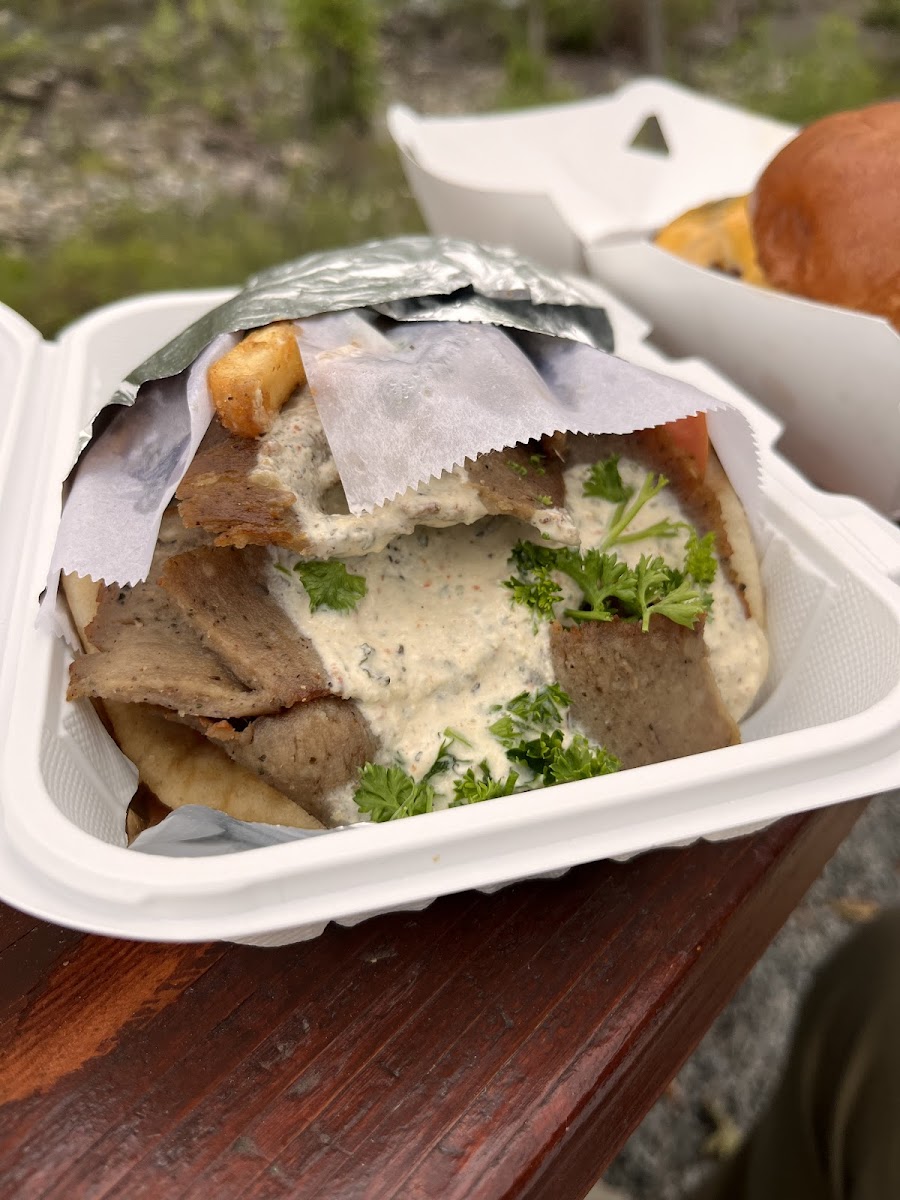 Went here on a Sunday afternoon (LSOB) during lunch time. Parking can be a little hard to find and it was pretty busy. The current spot is outdoor, but they're opening a brick & mortar soon. Went with a group of people. Ordered a General Sherman burger, Three Rivers plate and their Chicken Sandwich. The General Sherman burger was one of the best burgers I've had in a long time. Gyro perfectly cooked along with the burger meat and burger. It's a big burger, so you may need to share it. Their hummus was excellent. The chicken sandwich was also delicious lunch! Overall, a gem of a spot in Three Rivers. Highly recommend eating here regardless of the wait time. You won't regret it.